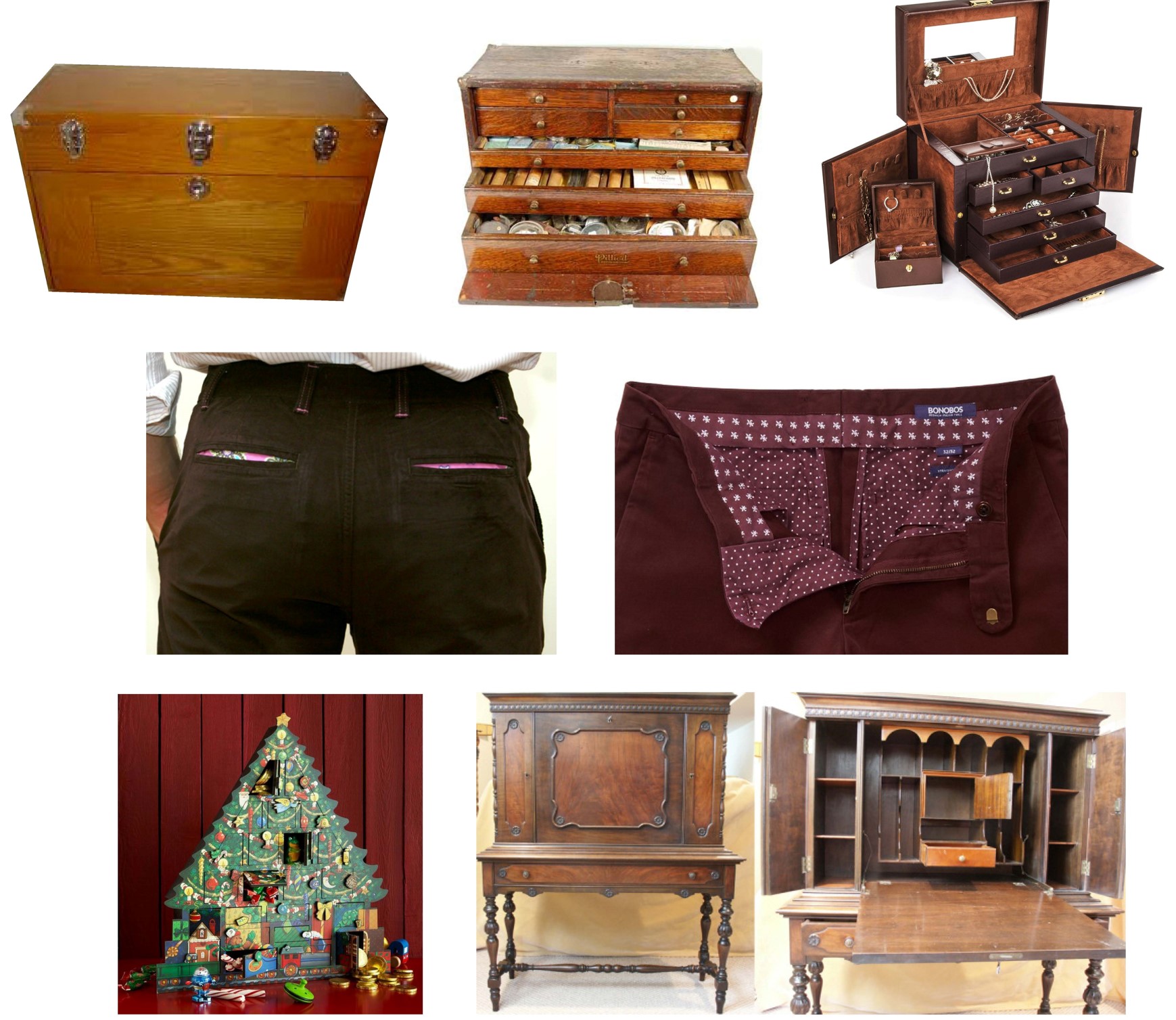 The design inspiration for the house is early/mid-twentieth century machinist chests, which when closed, are clean, simple boxes with a handle for carrying, but when opened, reveal many specialized compartments to support the machinist’s work. We took it a bit further and starting thinking about other fun “reveals” – like lining in clothing, or candy hidden inside Advent calendars – and began designing those fun and practical moments into this project.