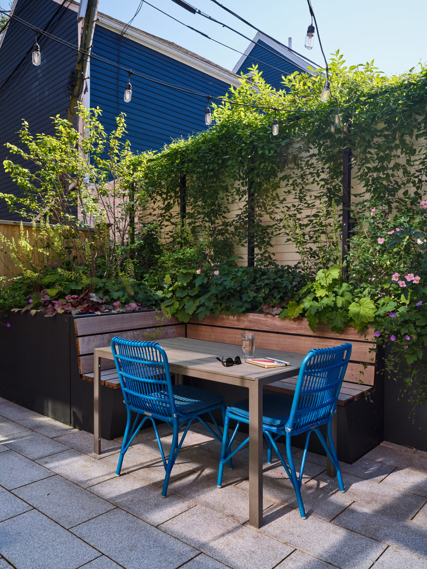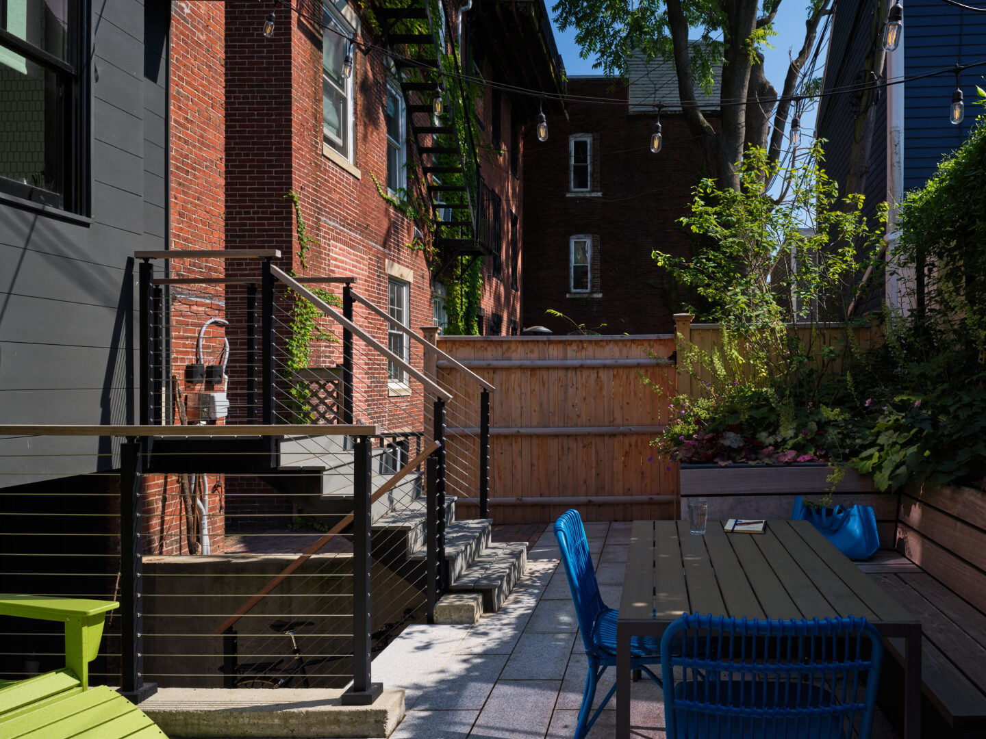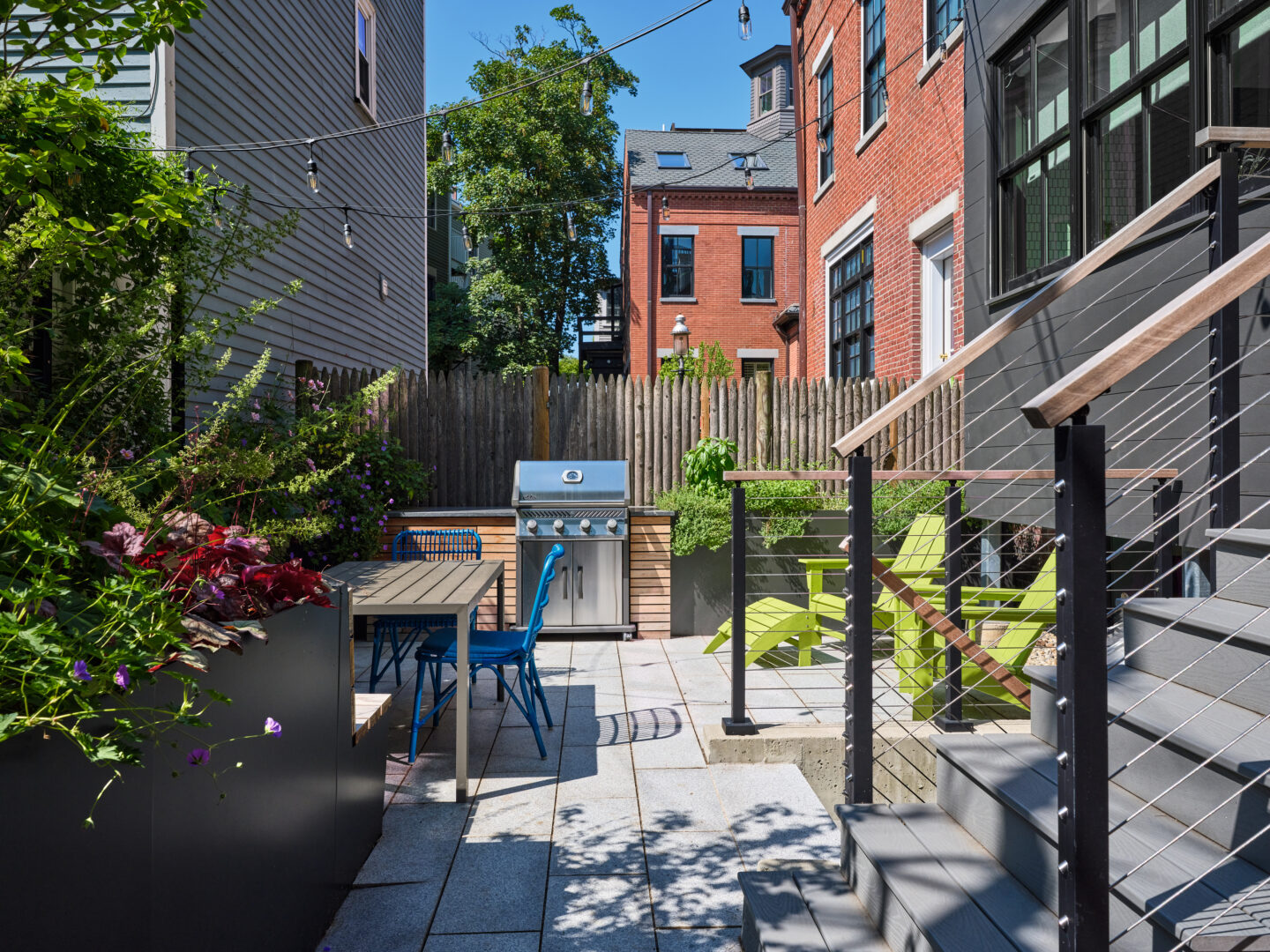 And last but not least, of course, is the backyard - expertly designed by Offshoots, Inc. The same theme held outside as inside - packing as many activities into a tight space, without feeling cramped. A built in planter/bench, a grilling station, pollinator friendly plants, an herb garden, bike storage, a sitting area, trash storage, and access to the basement all manage to fit in this jewel of a backyard!