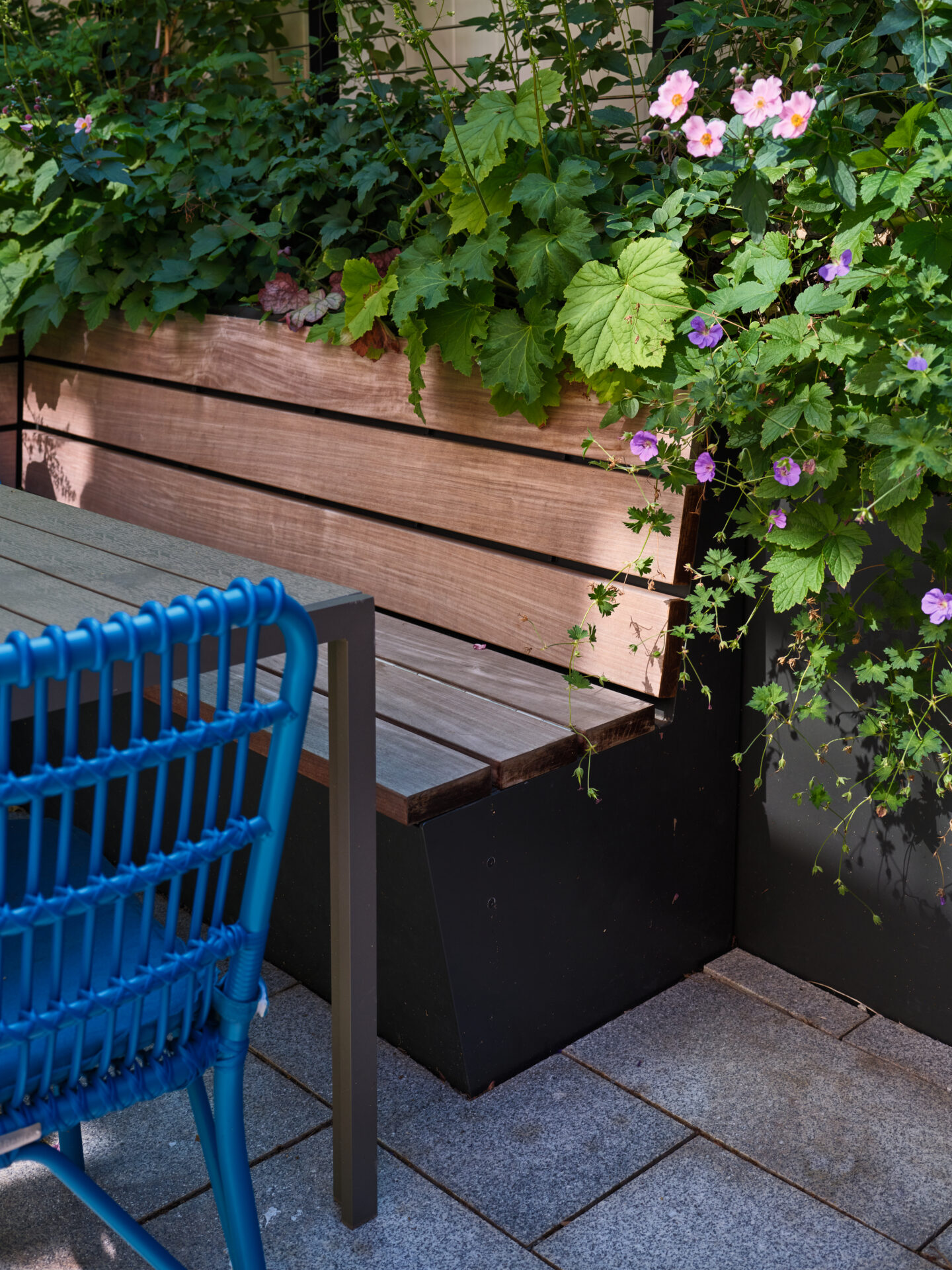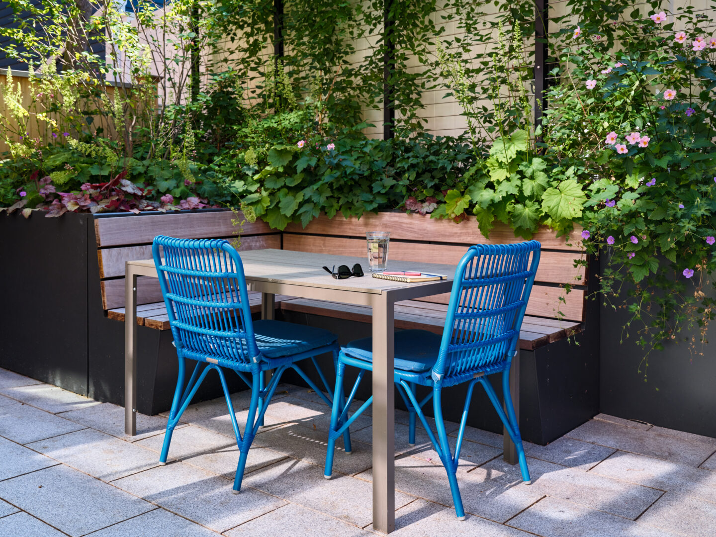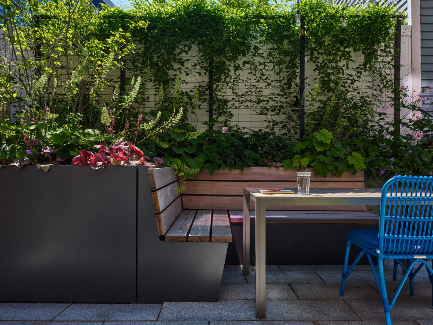 And last but not least, of course, is the backyard - expertly designed by Offshoots, Inc. The same theme held outside as inside - packing as many activities into a tight space, without feeling cramped. A built in planter/bench, a grilling station, pollinator friendly plants, an herb garden, bike storage, a sitting area, trash storage, and access to the basement all manage to fit in this jewel of a backyard!