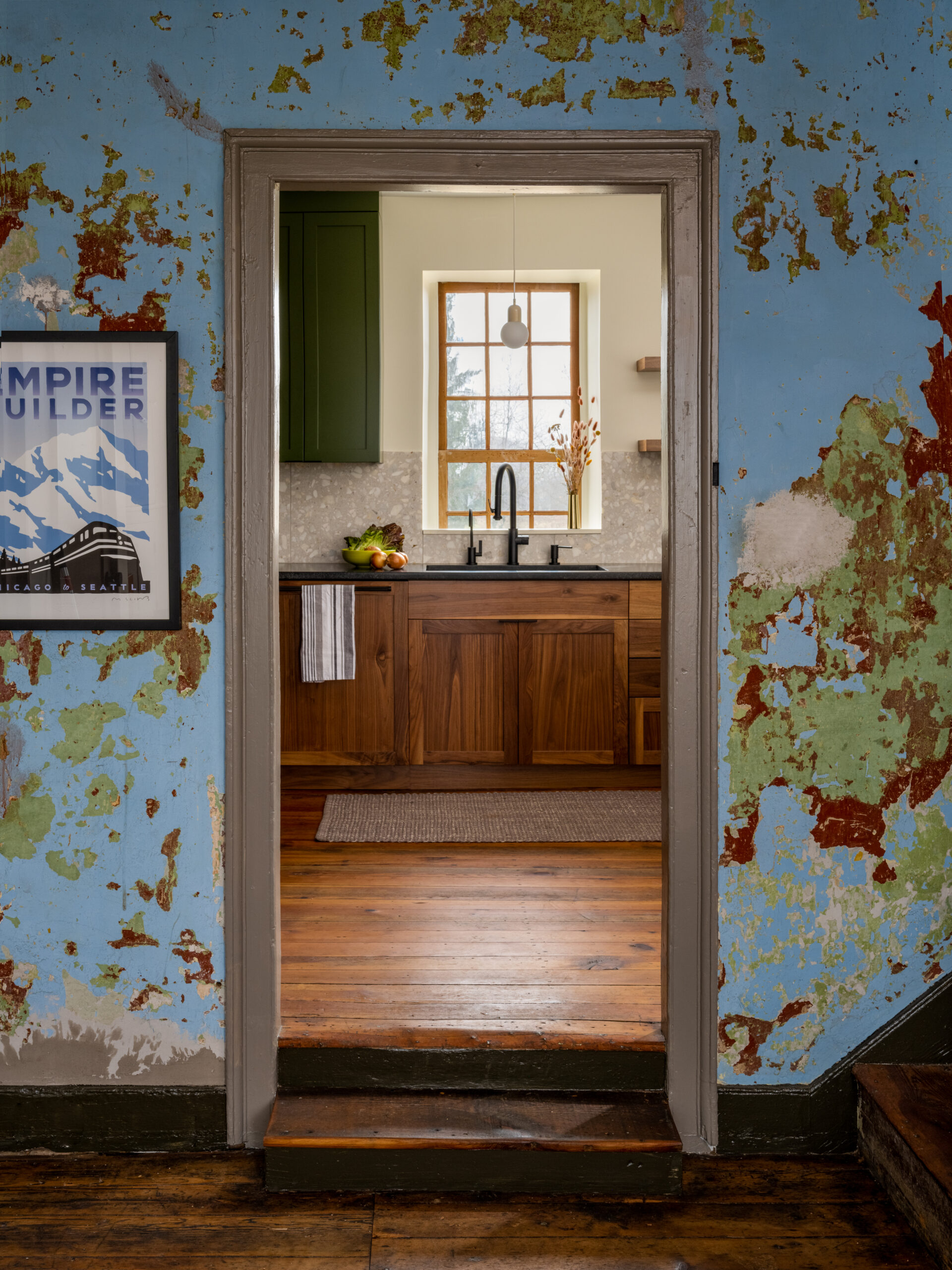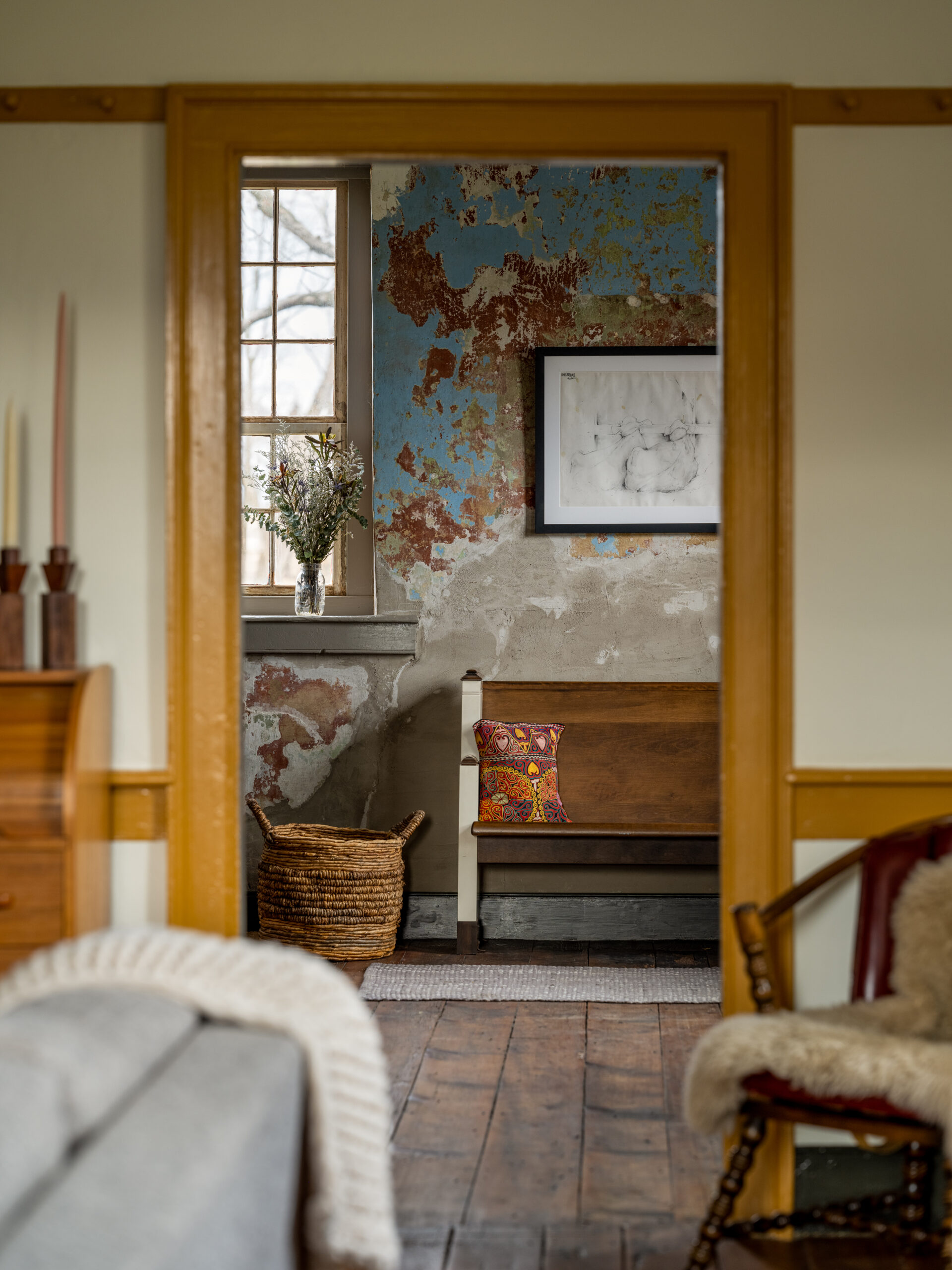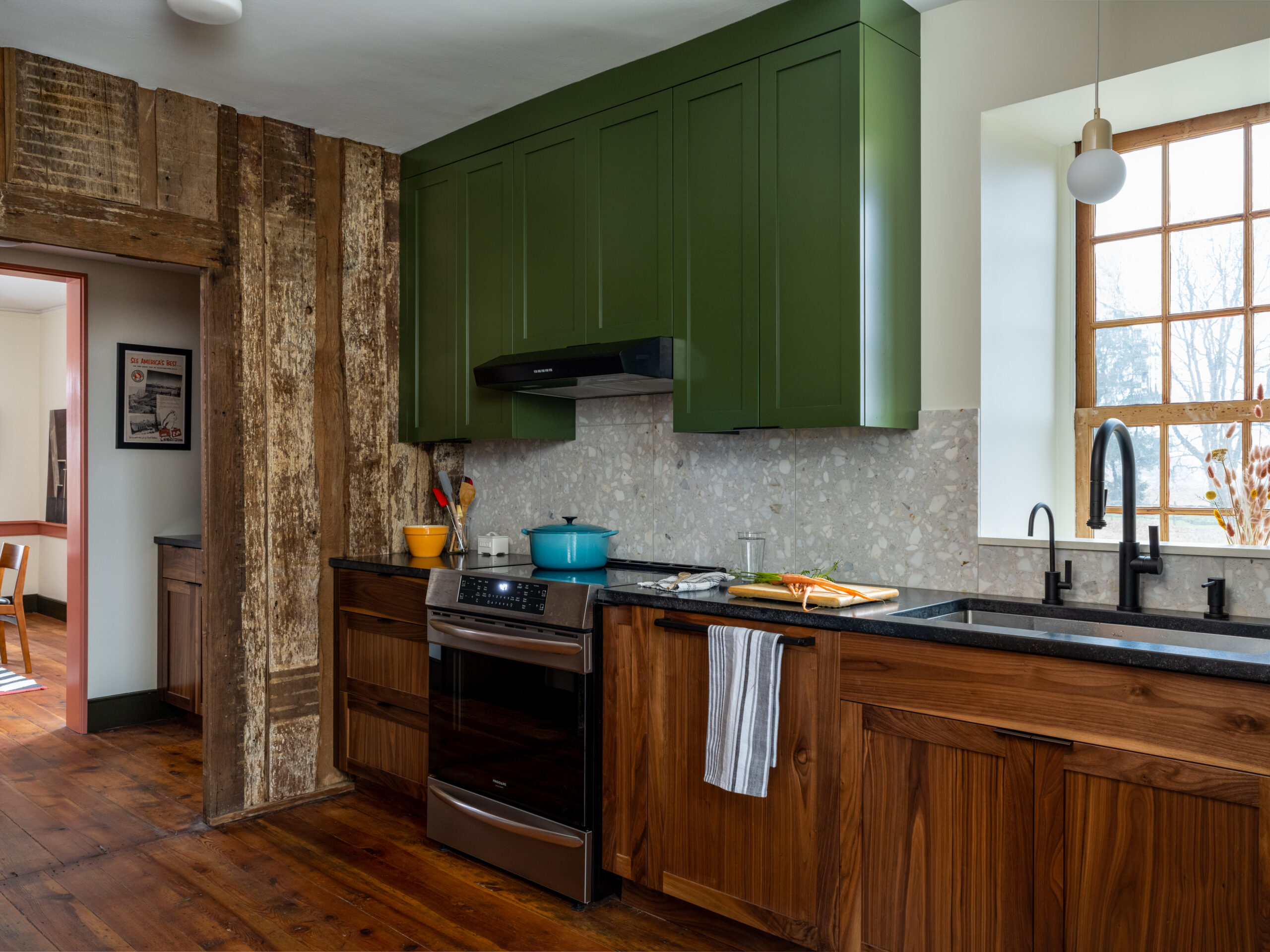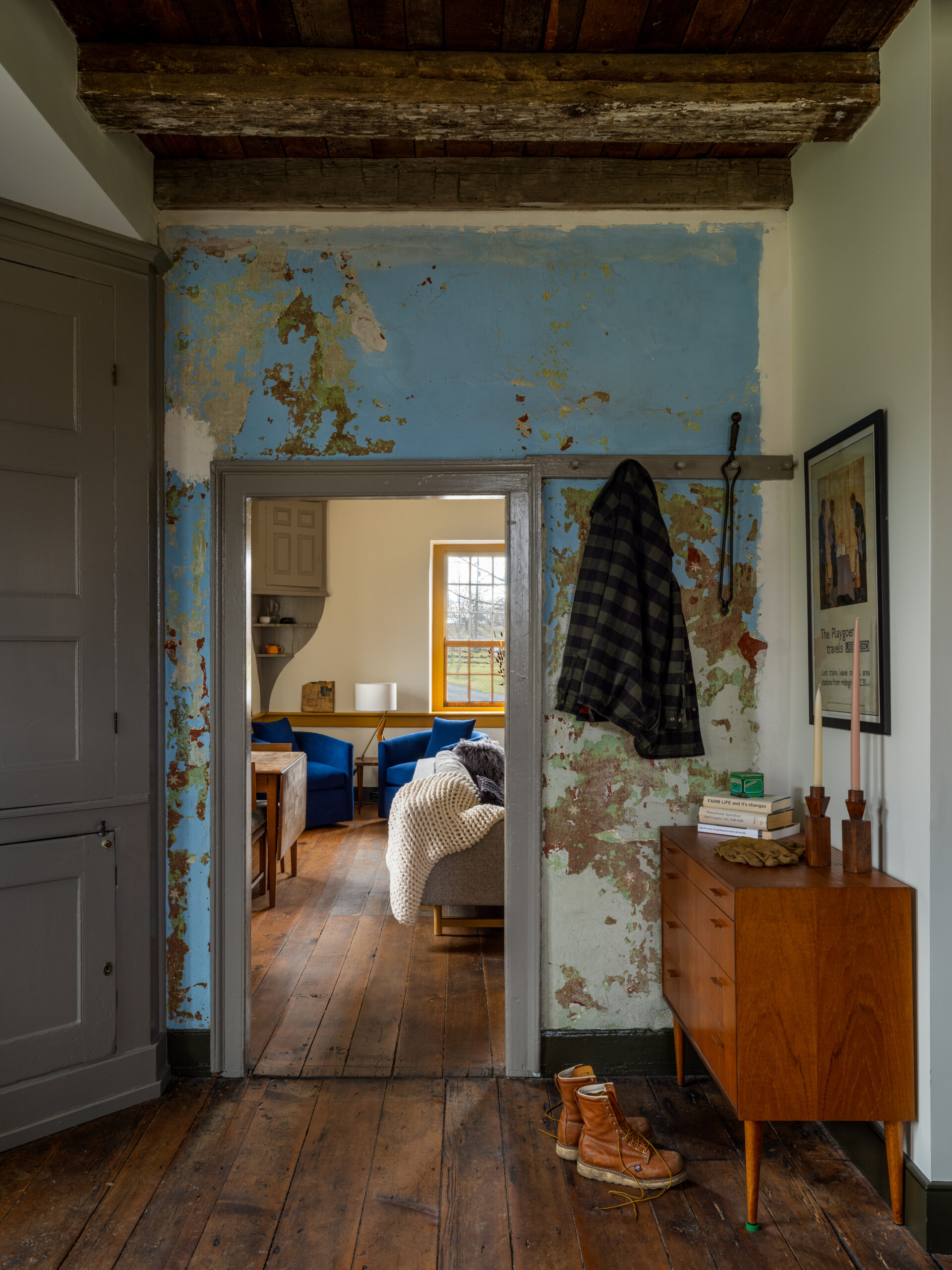 Originally built in 1730 by an immigrant family from Switzerland, this incredibly special and rare example of early American vernacular architecture has been waiting for its tune up for about 80 years! The last major renovation to the house occurred in the 1940s, when a bathroom was added. The house remained largely untouched, with functioning knob-and-tube wiring, no insulation, a smokehouse in the attic, and enclosed stairs. The renovation plans for the house took many forms over the past ten years, with ideas for additions, changing windows and doors, adding exterior spaces, and trying to solve a tricky floorplan that has zero hallways. Ultimately, the family decided on a very light touch, with a focus on systems, structure, and livability.