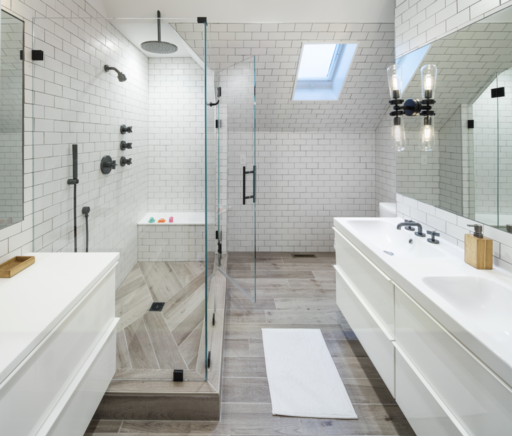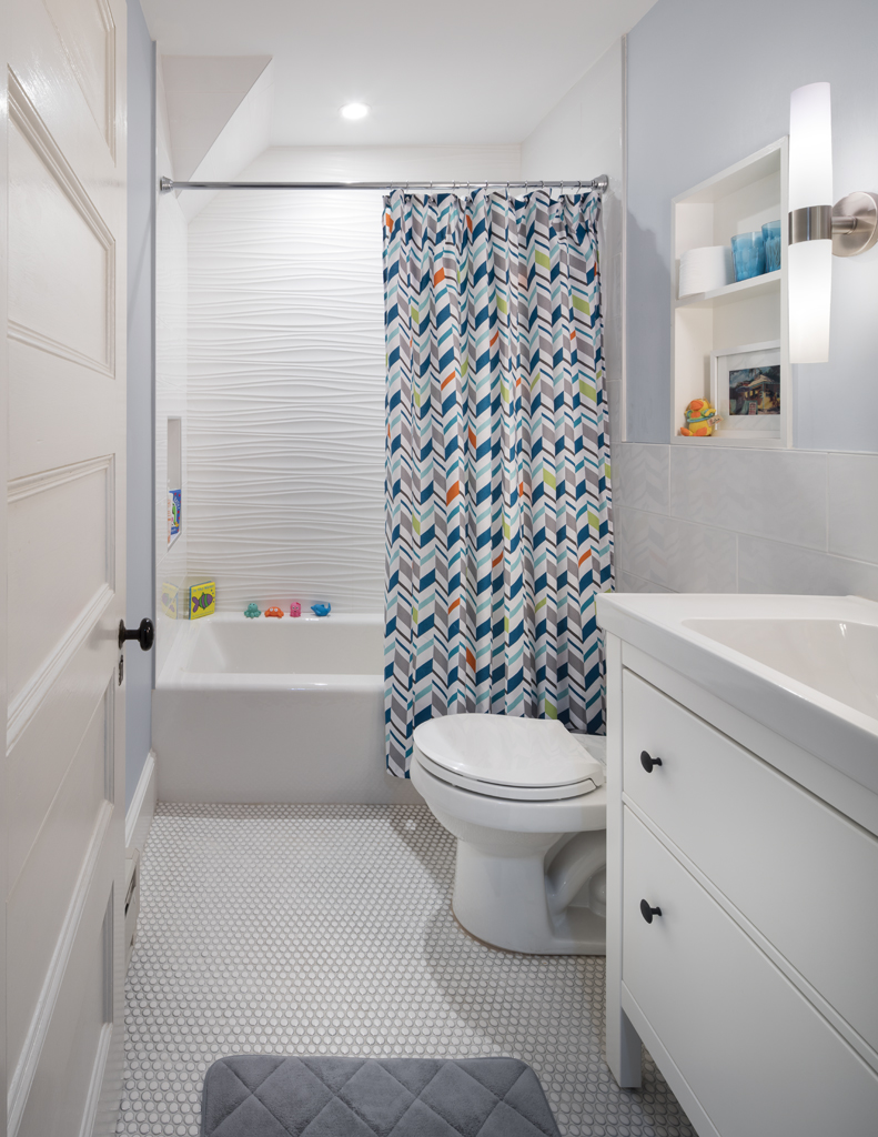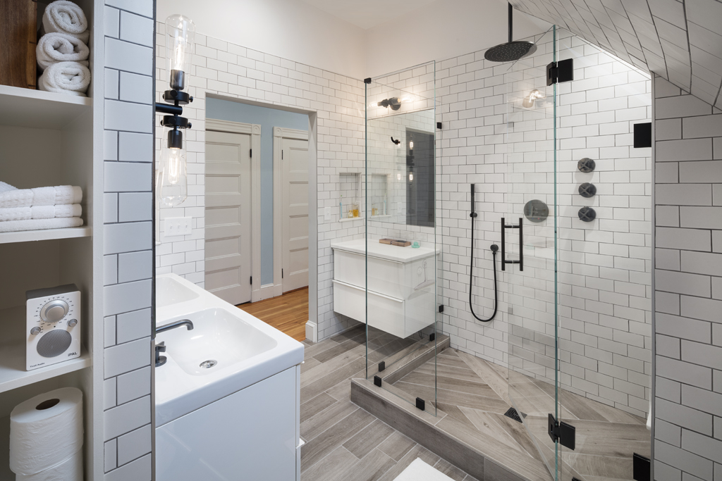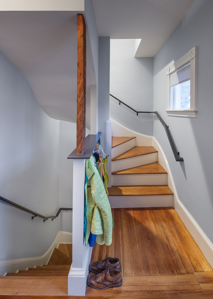 The clients for this project needed a reconfigured space for their growing family, in their condo occupying the second and third floors of a house in Somerville, MA. We had to find room for a large walk-in master closet, an expanded master bathroom, and a new second bathroom—all without expanding the footprint of the house or losing any existing storage or bedrooms.