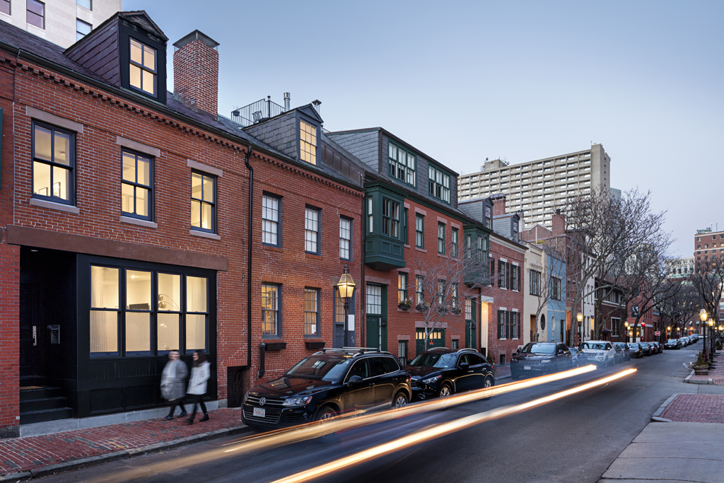 By removing 1970’s era infill brick and single pane windows and working with the Bay Village Historic Commission, we were able to reinterpret the facade to include a recessed entry, inspired by and in keeping with entries on the block. The new entry sequence also allowed us to create a piano nobile living floor, as well as keep vertical circulation as efficient as possible.
